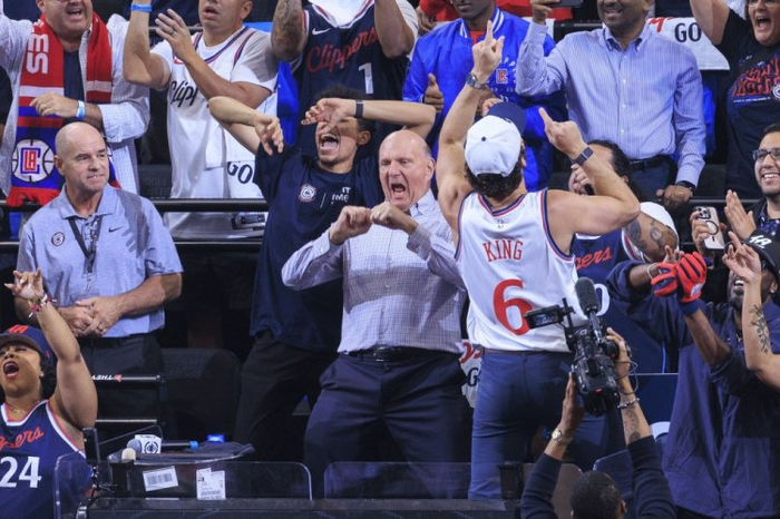 哈登在首节末段持球来到弧顶,快船此时已打出一波7比0攻势。座无虚席的观众席集体起立挥舞白色助威毛巾,这场景定会让快船替补后卫米尔斯倍感自豪,老板鲍尔默也如往常一样站在替补席旁的专属位置。