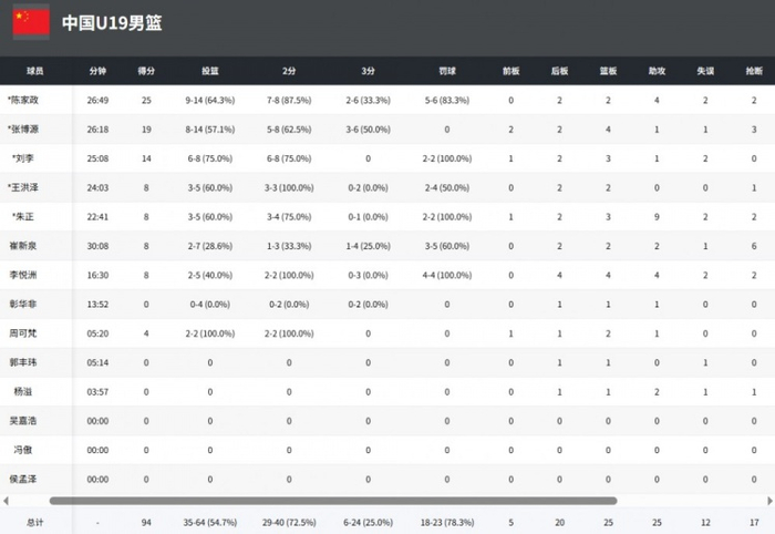 此役,陈家政得到全队最高的25分,张博源得到19分4篮板,刘李贡献14分3篮板,朱正得到8分9助攻。