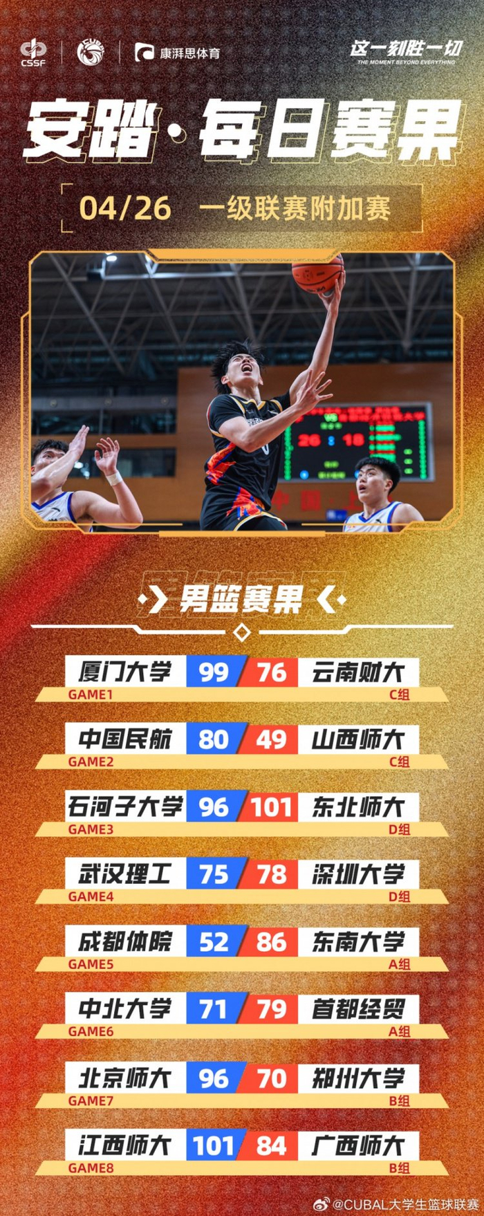 附加赛!CUBAL每日赛果:深圳大学险胜武汉理工 厦门大学取下首胜 NBA综合 2025.04.2621:44 关注 每日赛果今日的比赛中,首经贸末节打出29-9的得分完成翻盘,深大在主力陈思宇缺阵的情况下险胜武汉理工。【来源:直播吧】
