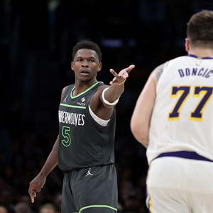直播吧4月26日讯 NBA季后赛,森林狼116-104力克湖人,总比分2-1领先。赛后爱德华兹接受了记者的采访。