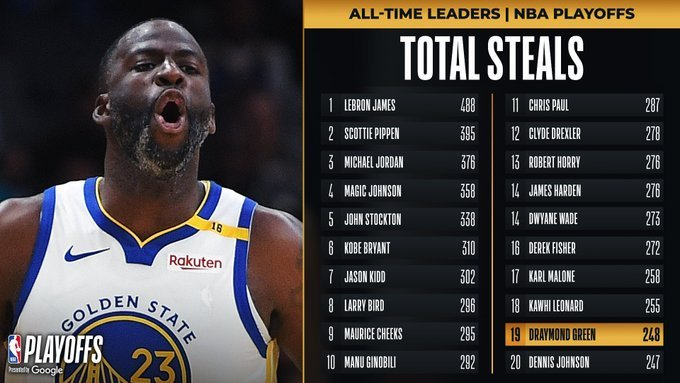 里程碑🎉追梦生涯季后赛抢断数达248 升至NBA历史第19位