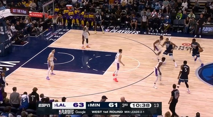 直播吧4月28日讯 湖人VS森林狼G4下半场,雷迪克变阵,用芬尼-史密斯顶替海斯首发。