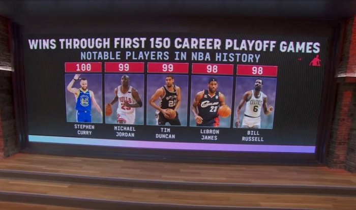 前150场季后赛胜场榜:库里100场第1 乔丹邓肯第2 老詹指环王第4