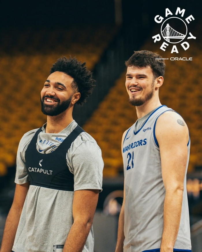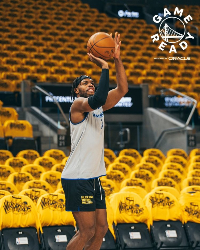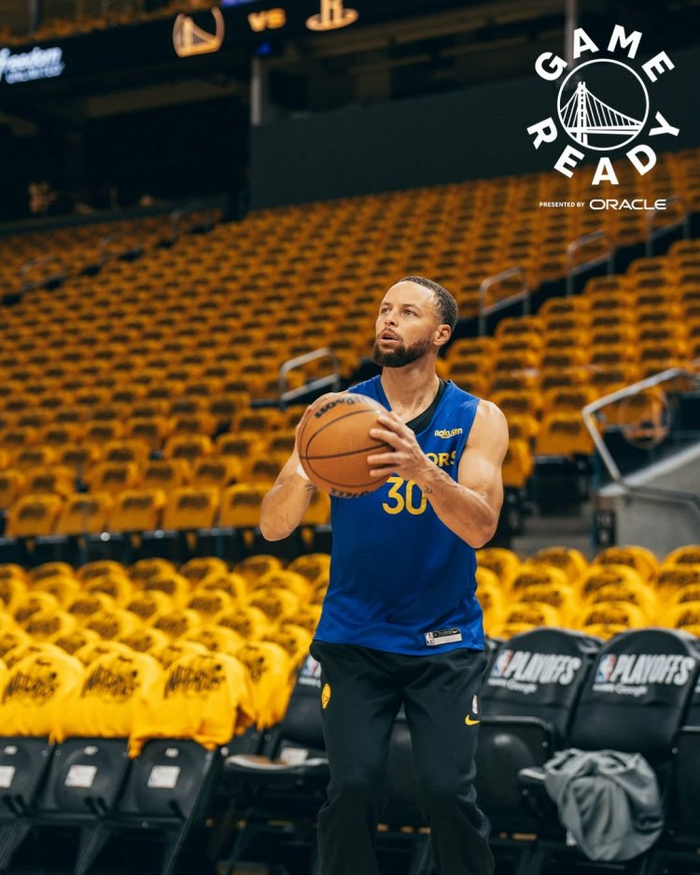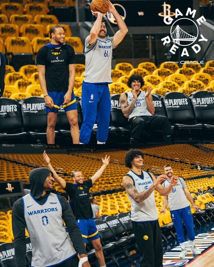 勇士官方晒赛前训练照:大通中心金色海洋 全队氛围轻松 库追领衔