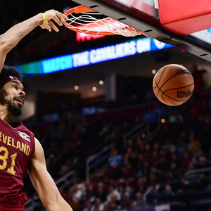 上半场,骑士内线阿伦表现出色,进攻高效且防守密不透风,在17分钟的时间里,投篮4中4,罚球4中4,拿到12分11篮板1助攻6抢断的数据,正负值+33。