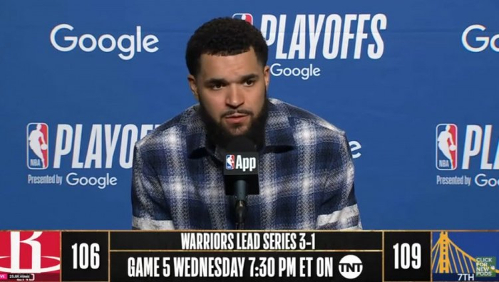 直播吧4月29日讯 NBA季后赛西部首轮G4,火箭106-109惜败勇士,大比分1-3落后,赛后,火箭后卫范弗里特接受了媒体采访。