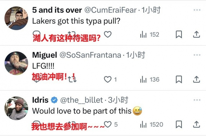 美网友对中国球迷的这种新颖的观赛方式颇为折服,如下是部分美网友在此条推特动态评论区的回复。