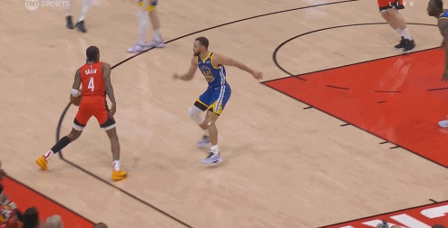 是这一下?杰伦-格林跑动时跟库里对膝盖 前者有些不适!