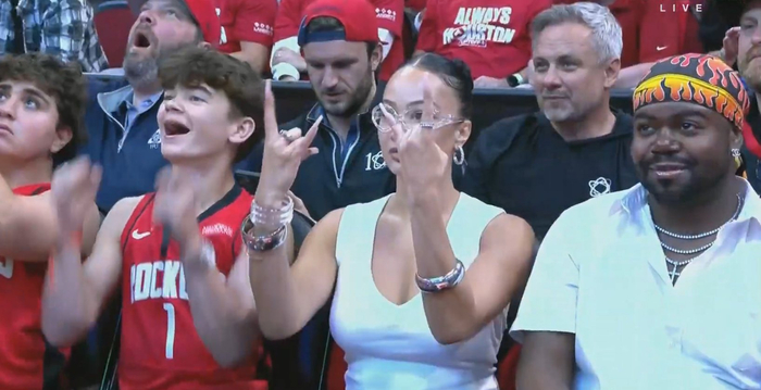 😍老Baby来了!杰伦-格林40岁女友场边看球 和球迷互动~