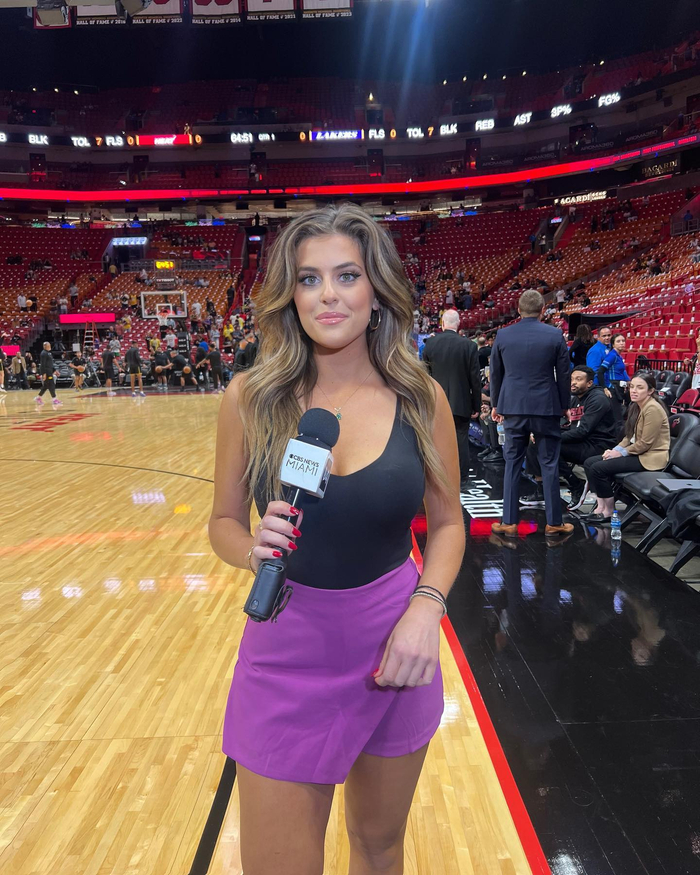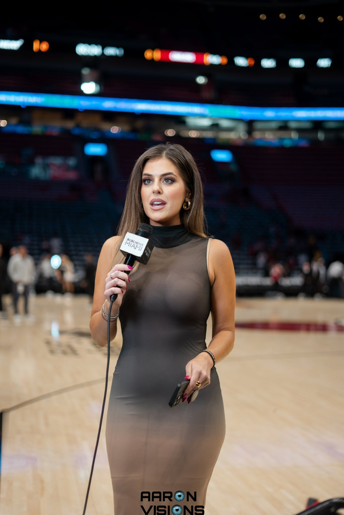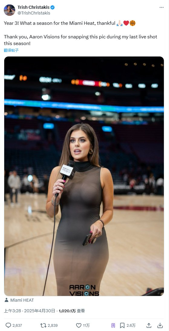 热火CBS场边记者Trish Christakis此前晒出了为热火本赛季所站最后一班岗的工作照,并写道:“第三个赛季,多么棒的一个赛季,感恩!谢谢Aaron Visions为我拍摄的本赛季最后一班岗的照片!”