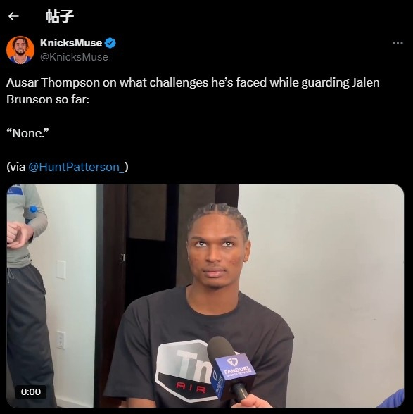值得一提的是,G1后的采访中谈到防守布伦森最大的挑战时奥萨尔表示没有。