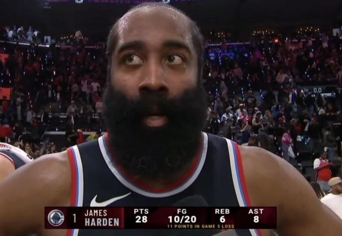 直播吧5月2日讯 NBA季后赛首轮G6,快船111-105击败掘金拖入抢七,赛后,哈登接受了采访。