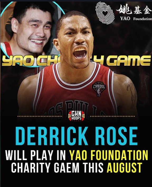 chnhoops配文:德里克-罗斯将会打姚基金慈善赛。罗斯今年八月将会在姚基金打球。