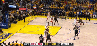 不容易!库里艰难接球 冲击内线强攻上篮得手