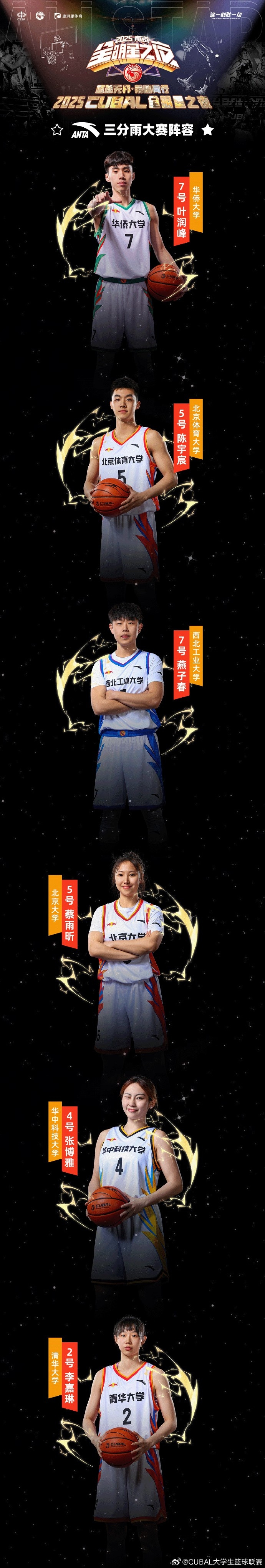 CUBAL三分大赛名单:叶润峰&陈宇宸&燕子春&蔡雨昕&张博雅&李嘉琳