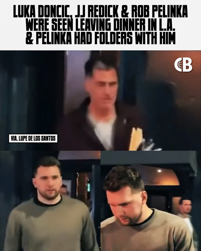 🤨谈续约?东契奇与雷迪克&佩林卡三人聚餐👻佩总抱着文件夹