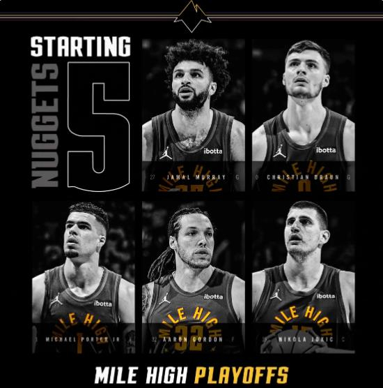 掘金首发:穆雷、布劳恩、小波特、戈登、约基奇。