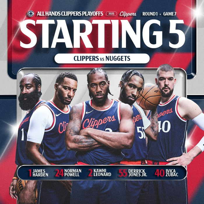 🚨变阵!快船首发:哈登、鲍威尔、小卡、小琼斯、祖巴茨