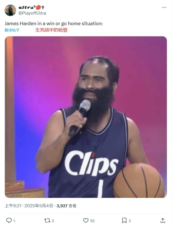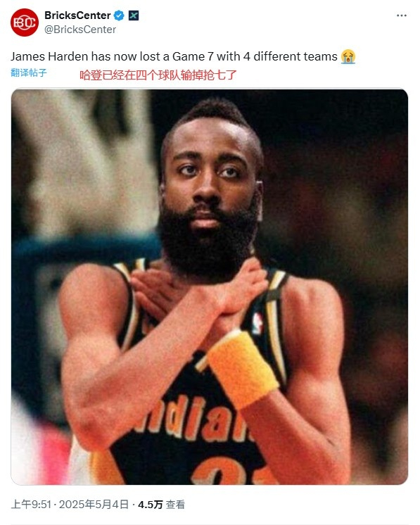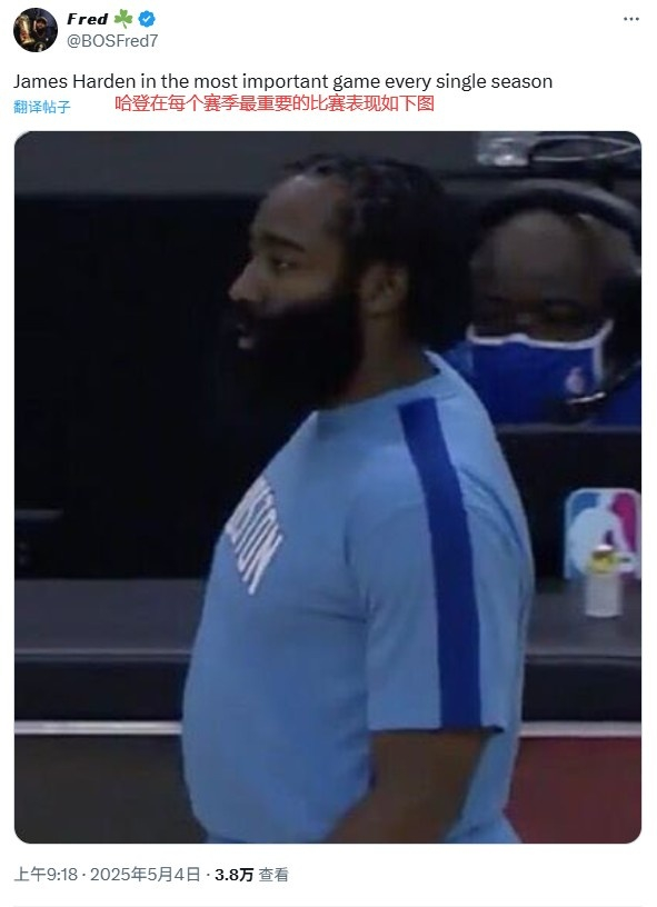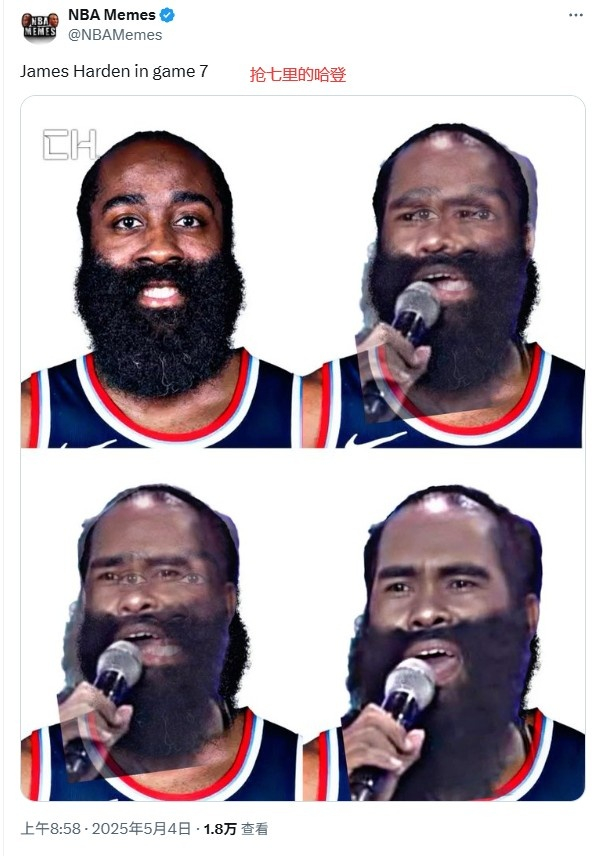 抢七仅得7分🥶美网友P图群嘲哈登:生涯每场重要比赛都这鸟样