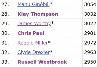 在本场比赛中,威少季后赛总得分超越德雷克斯勒,上升至NBA历史第32位,前一位是雷吉-米勒。