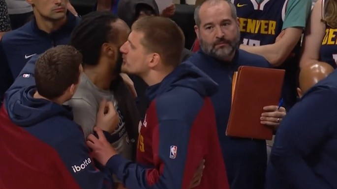 老不正经!掘金抢七晋级 约基奇与小乔丹赛后上演硬汉之吻