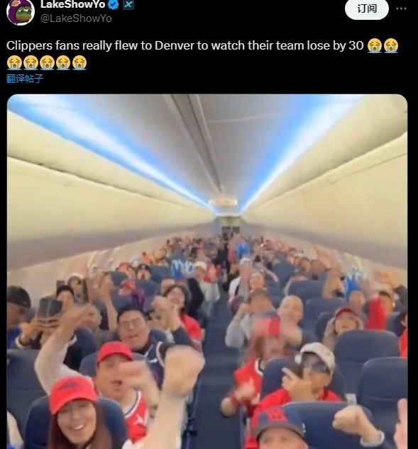 湖人媒体LakeShowYo发文嘲讽了快船球迷,写道:“快船球迷飞到掘金主场见证自家队伍狂输30分😂😂😂😂。”