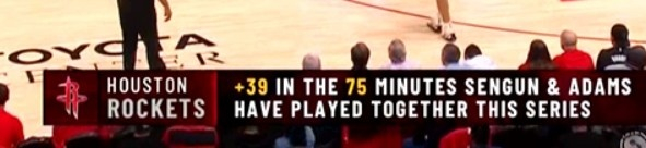 😮亚当斯和申京系列赛至今同时出战75分钟 期间火箭净胜39分!