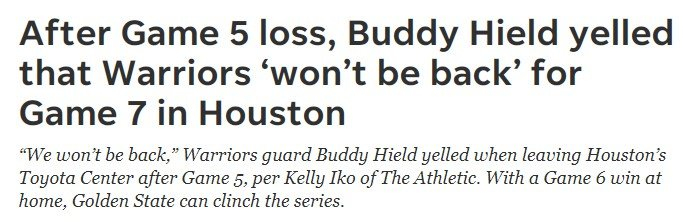 值得一提的是,希尔德在G5之后曾表示高喊不会去休斯敦打抢七,他大喊:“我们不会回来了!”