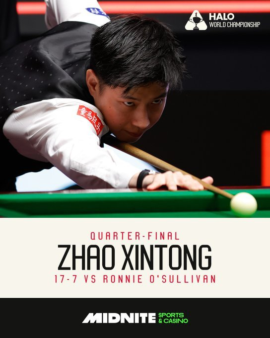 斯诺克世锦赛半决赛,赵心童17-7击败“火箭”奥沙利文晋级。目前赵心童在决赛中11-6领先马克-威廉姆斯。
