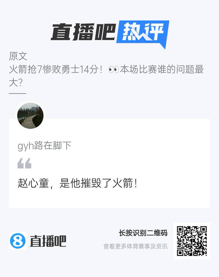 串台了火箭抢七不敌勇士 吧友:都怪赵心童摧毁了火箭