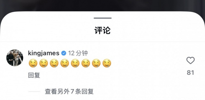 丈夫勒布朗显然对此十分满意,他在妻子的帖子下留言了一串🔥和流口水🤤的表情。