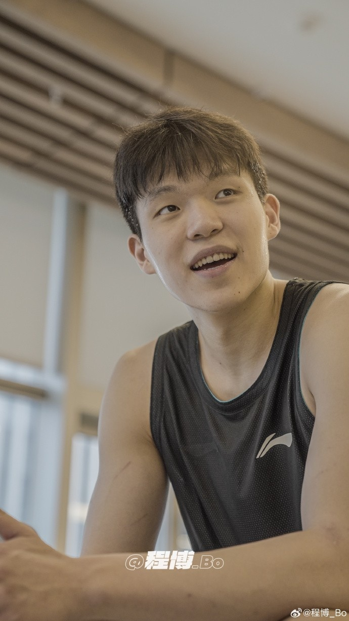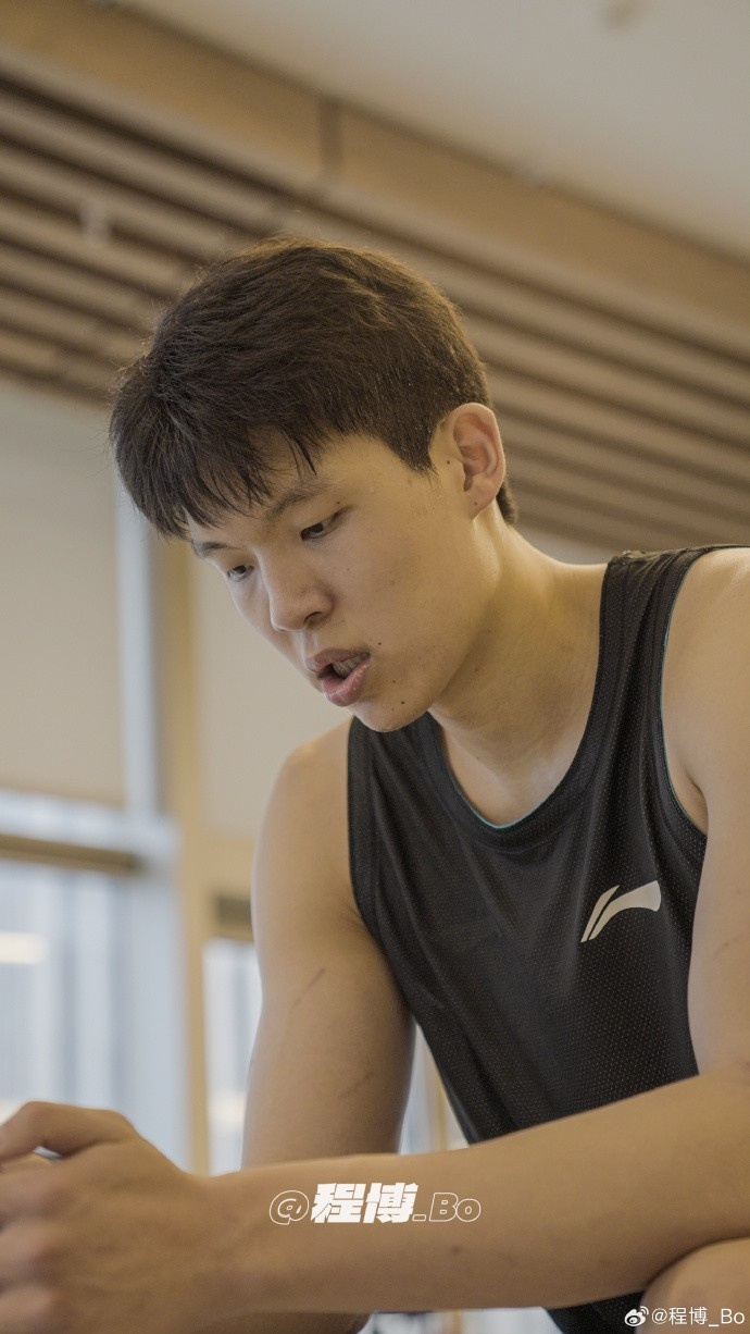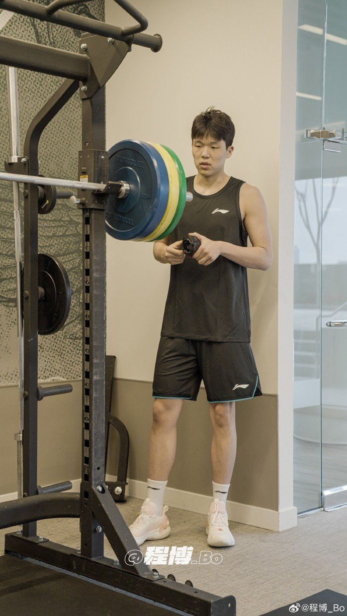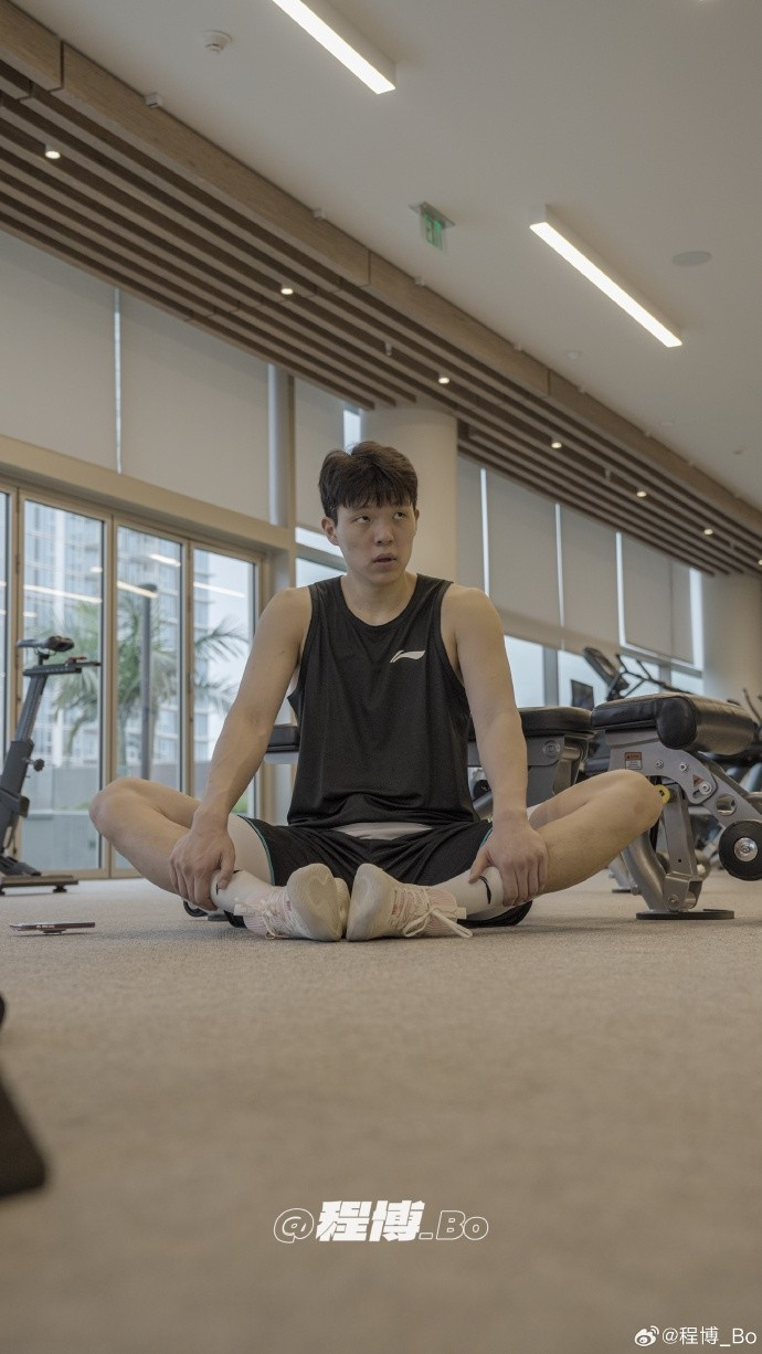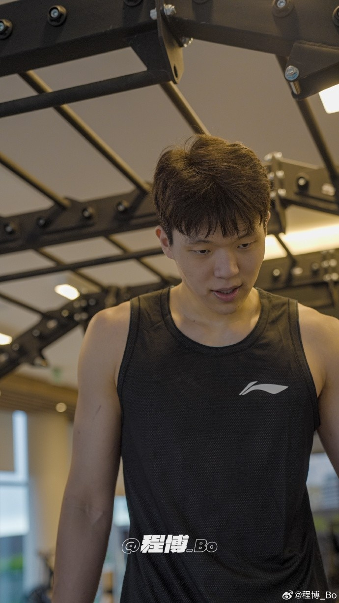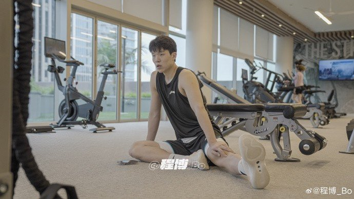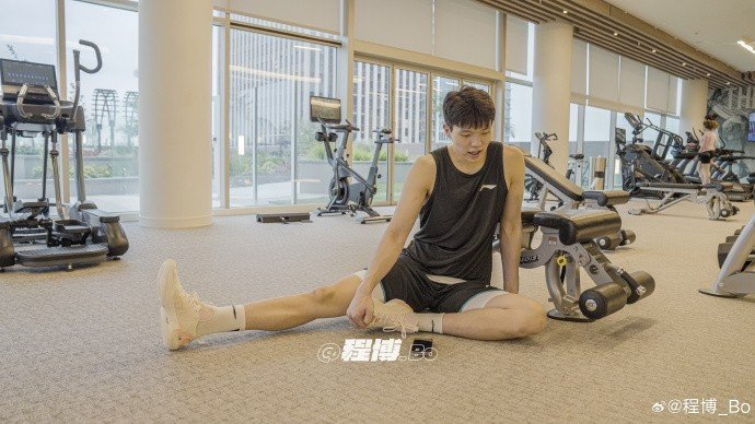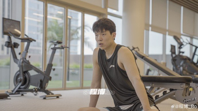 程博在个人微博上写道:“今天是集训营休息日,瀚森自己在公寓体能房保持状态。