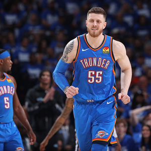 20-21赛季,哈滕为掘金打了30场比赛,场均9.1分钟拿到3.5分2.8篮板,本赛季哈滕在雷霆场均27.9分钟砍下11.2分10.7篮板3.8助攻1.1盖帽。