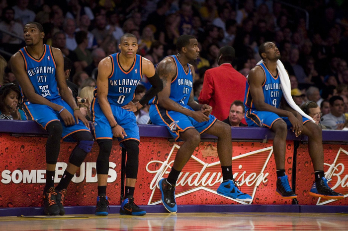 (2012年雷霆:杜兰特、威斯布鲁克、哈登、伊巴卡、费舍尔、塞弗洛沙、帕金斯、科里森等人)。