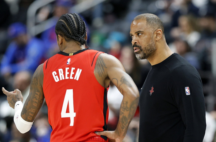 乌度卡表示,他认为勇士在季后赛中的防守策略是对杰伦-格林的一种认可,但他也提到,他和这位23岁的后卫谈过这个夏天如何提升自己。