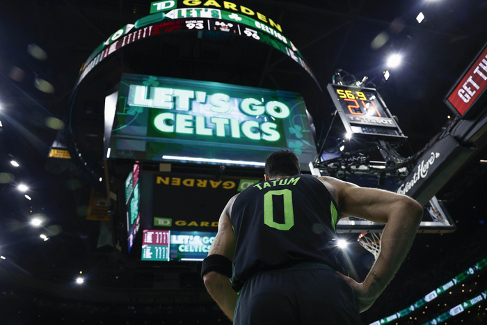 据统计,塔图姆在本轮系列赛的第四节表现拉胯,他在这两场合计12投1中(三分7中0),仅得到6分,真实命中率为21.8%。