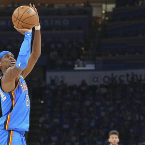 直播吧5月8日讯 NBA季后赛次轮G2,雷霆主场149-106大胜掘金,亚历山大三节打卡。