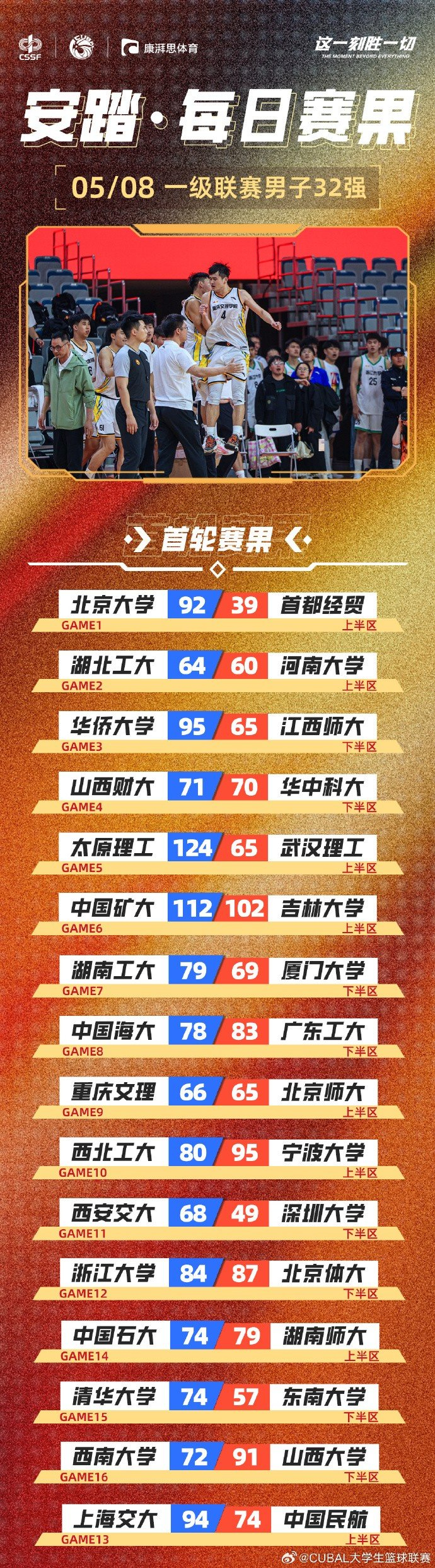 全国大赛第一日的比赛可谓是精彩至极,北京大学大比分战胜首都经贸拿下首胜,湖北工大、山西财大、广东工大、重庆文理、北京体大、湖南师大均险胜对手。