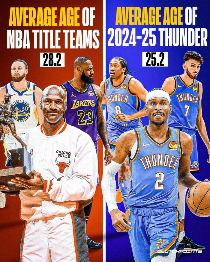 👀还太年轻?美媒:历史冠军球队平均年龄28.2岁 本季雷霆25.2
