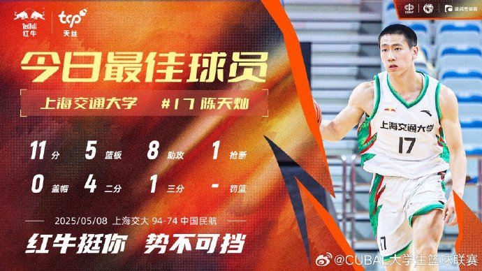 11分5板8助!CUBAL今日最佳球员:上海交通大学陈天灿