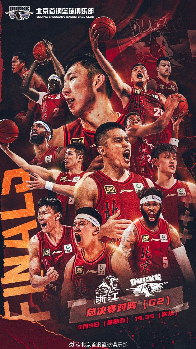 赛前,北京男篮晒出了本场比赛的预热海报,配文:“去怒吼,去战斗!今晚总决赛G2,北京男篮准备好了!”