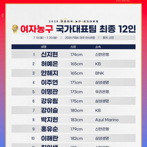 【韩国篮协公布韩国女篮12人名单,朴智秀、朴智贤领衔,金丹妃缺席】昨日,韩国篮协公布了2025女篮亚洲杯韩国女篮12人名单,除35岁的传奇球星金丹妃(图2)以外,朴智贤、朴智秀、姜怡瑟、李海兰等名将悉数在列。她们将在小组赛阶段与中国女篮交手。