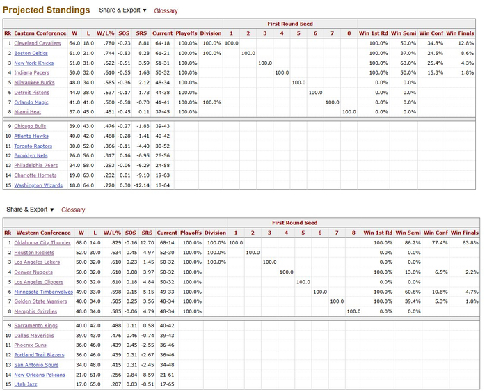 BBR预测:雷霆夺冠63.8%&勇士1.8% 骑步晋级五五开&尼克斯被看好