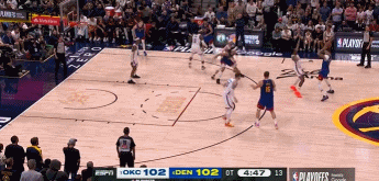 直播吧5月10日讯 NBA季后赛次轮G3,掘金113-104加时险胜雷霆。