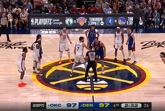 同一起跑线!末节还剩2分32秒两队97平 拼抢判双方犯规&中圈跳球