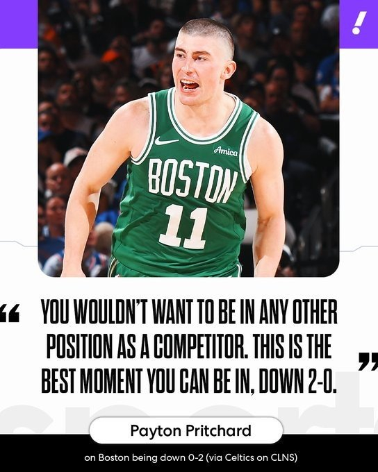 赛后,普理查德接受采访,谈到0-2落后时的心态,他说:“作为竞争者,0-2落后是你能处于的最佳时刻,你不会想处在其他的位置。”