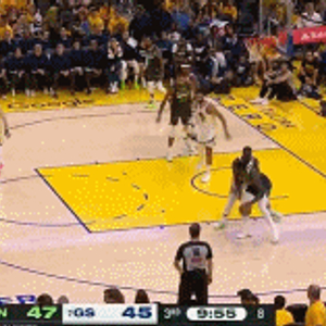 兰德尔击地找到中路空切的爱德华兹 后者空中舒展双手落叶暴扣!