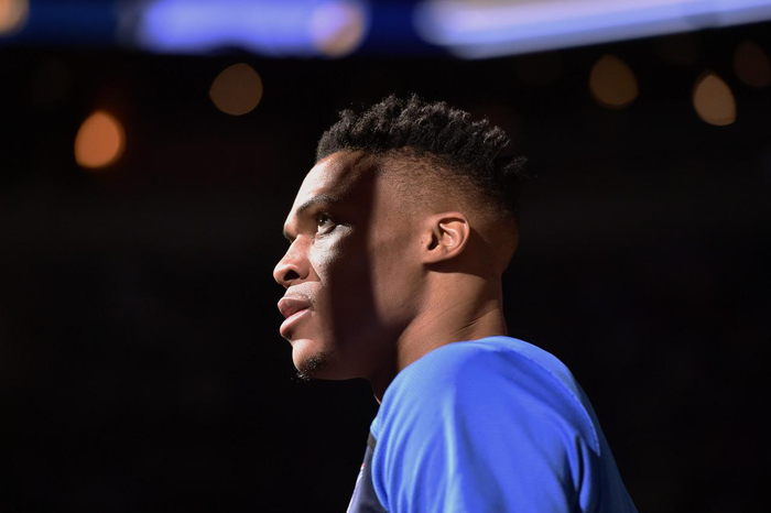 2018年西部首轮G6,威少在对阵爵士的比赛中43投18中,三分19中7,罚球6中3,得到46分10篮板5助攻,雷霆91比96告负。