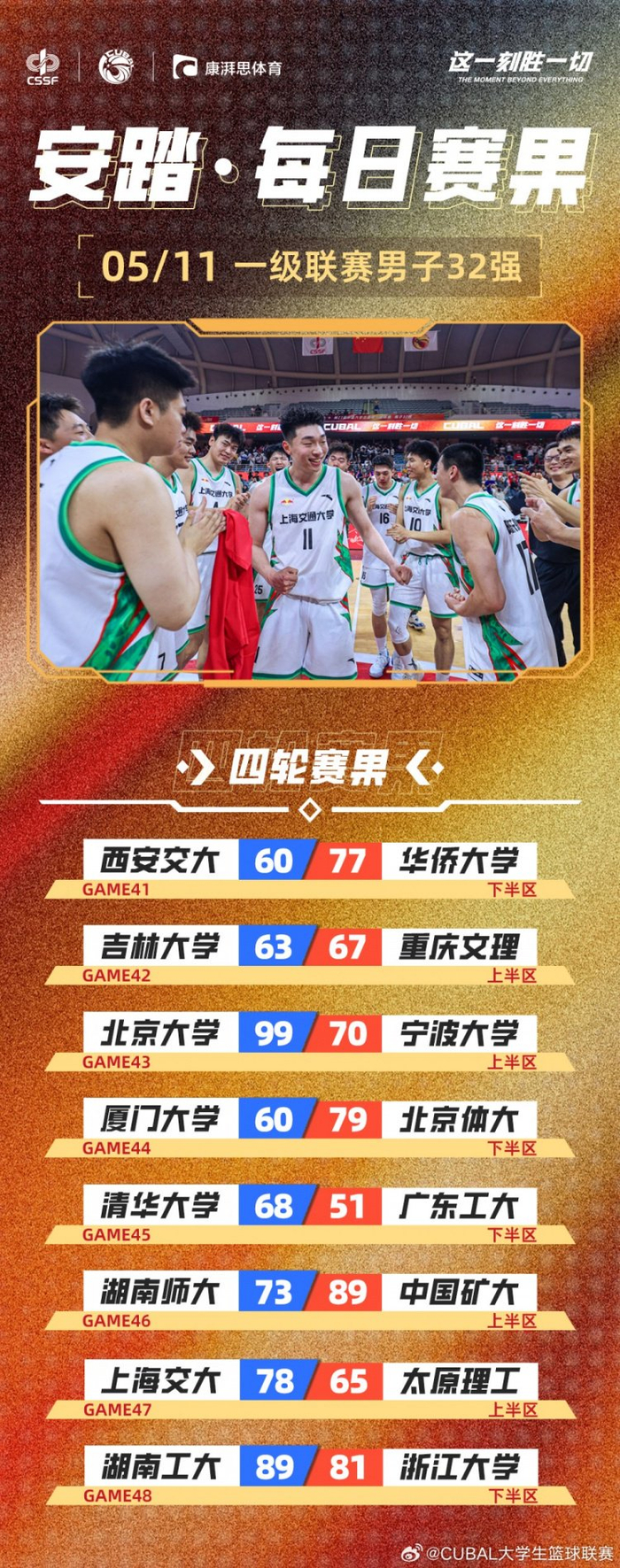 ️CUBAL今日赛果:华侨&北大&清华&上交携手胜者组晋级全国八强
