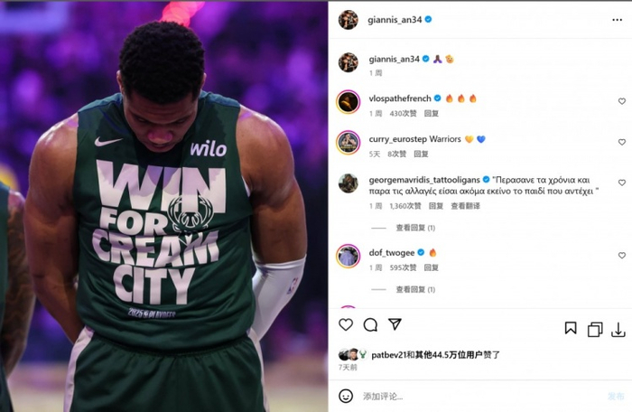 对离队持开放态度!👀字母哥一周前INS:要为密尔沃基赢球